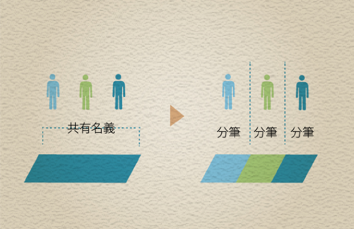 共有地分割の場合、譲渡所得税、不動産取得税、は課税されませんが、分筆登記の際、登録免許税がかかります。